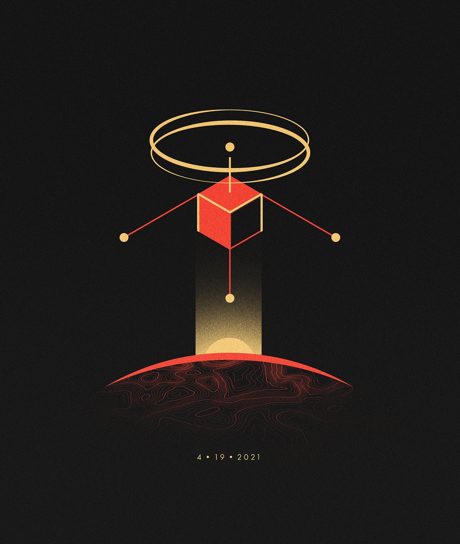 We collaborated with AeroVironment in tweaking the design to highlight Ingenuity’s land-surveying objective and include the date of the first flight. We were very pleased with the final product, and the design ended up on T-shirts for the whole team! To learn more about