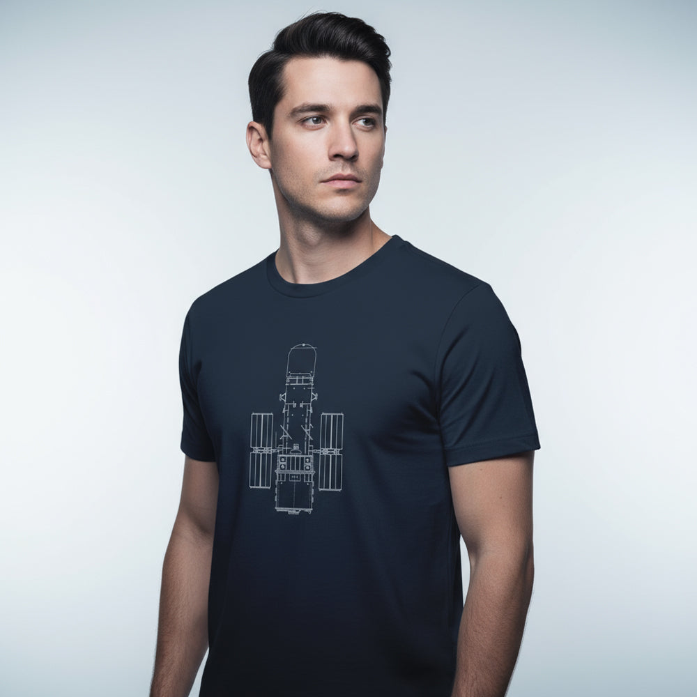 A tribute to one of humanity’s greatest observatories. This design features a detailed technical illustration of the Hubble Space Telescope—an instrument that reshaped our understanding of the cosmos. Printed on premium cotton, it celebrates the precision, engineering, and curiosity that keep our eyes fixed on the stars.