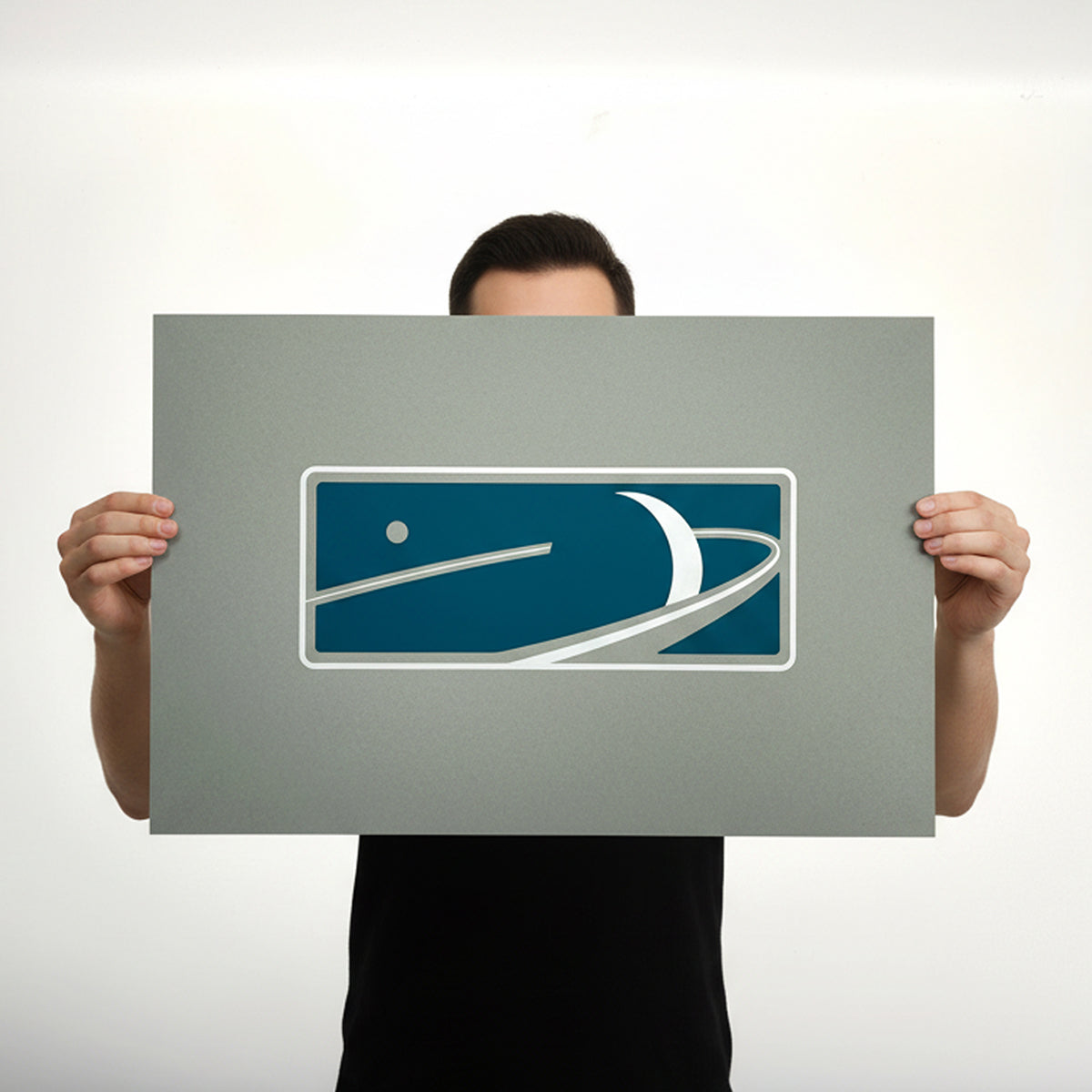 Inspired by upcoming crewed lunar flyby missions, this design captures the geometry of orbital paths as a spacecraft arcs around the Moon before returning to Earth. The artwork reflects the engineering, navigation, and planning required to send humans back into deep space—where every line represents motion, gravity, and intent.